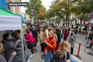 Ausgabe bei den offiziellen Welcome Days zum Uni-Start und zahlreichen weiteren Events der Universitäten wie Karrieremessen, bei ÖH-Veranstaltungen u.v.m. Großer Andrang und beste Stimmung garantiert.